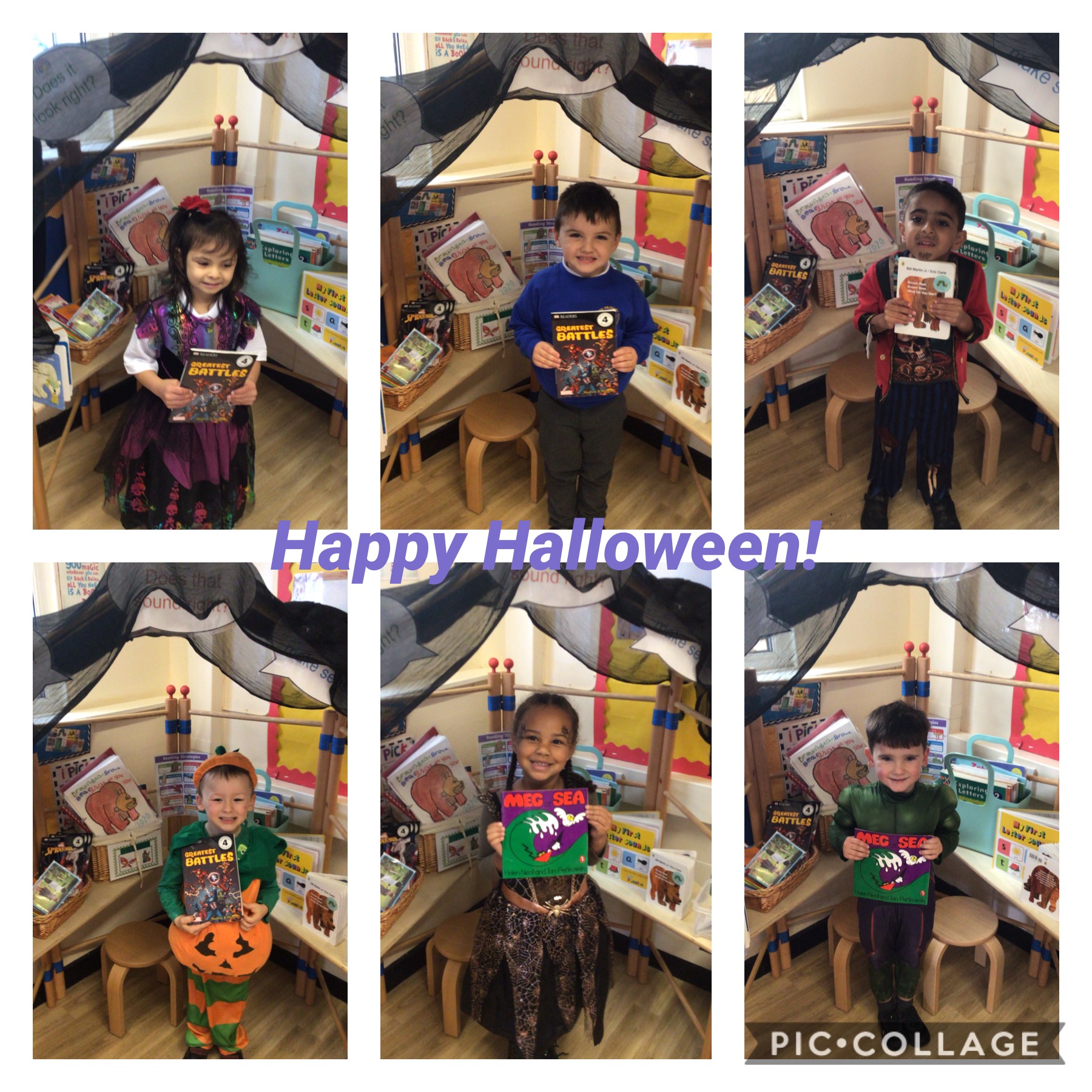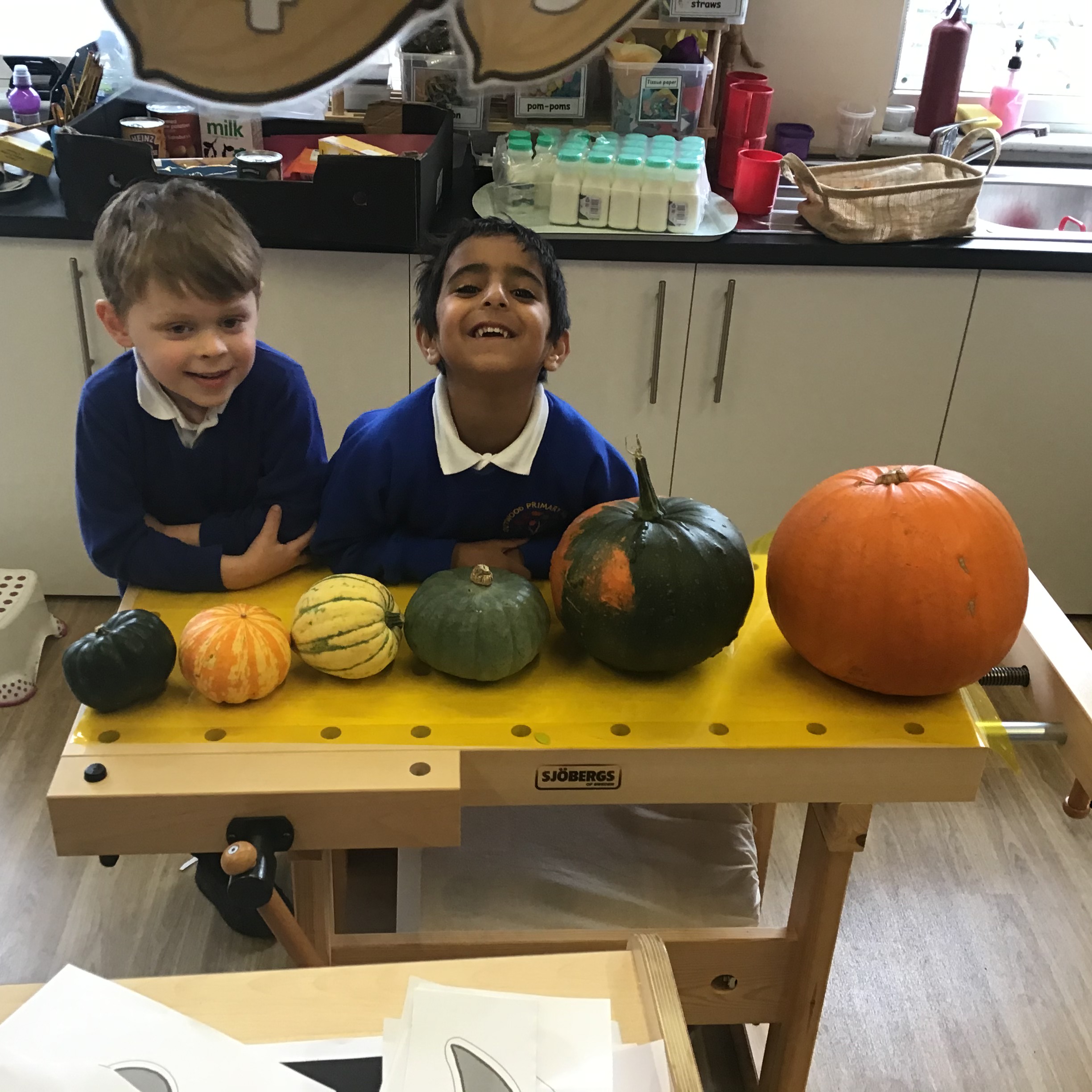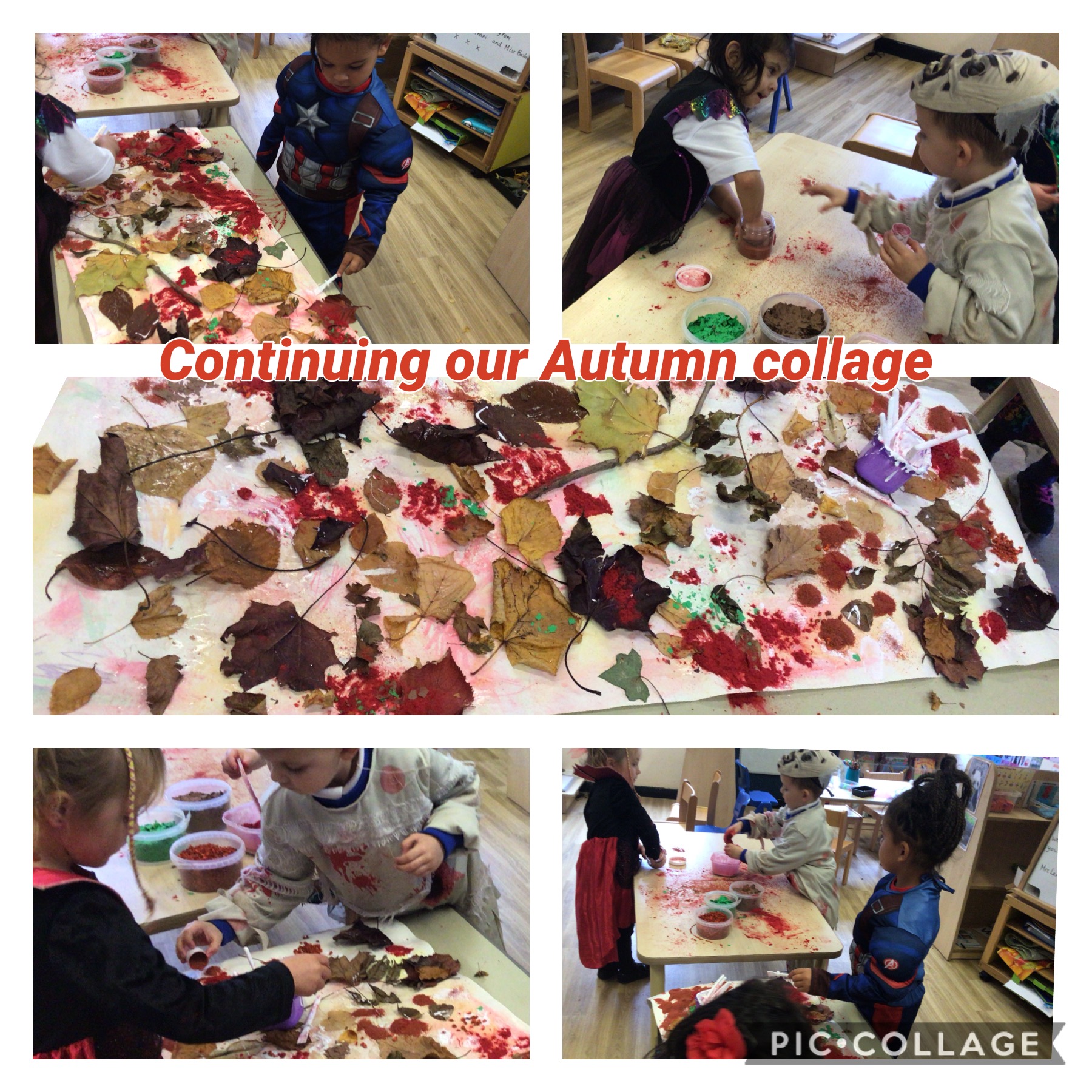 What a fantastic week we've had! We celebrated Halloween by dressing up, listening to Room on the Broom, singing 5 Little Pupkins and of course having a little party of crisps, biscuits and sweets. Later in the week, we learned about Bonfire and firework safety. We've made some beautiful firework pictures using paint and glitter. We also completed our whole class Autumn Collage and have put it on display along with the autumn homework some of the children have completed. We ended the week by making a sparkler that we ate at the end of the day after we wrote our name in the air.